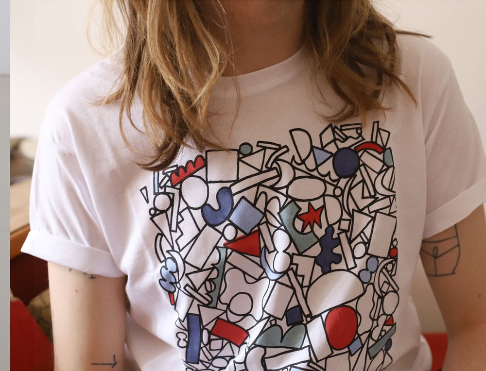 PILE OF COLORED SHAPES BASIC TSHIRT