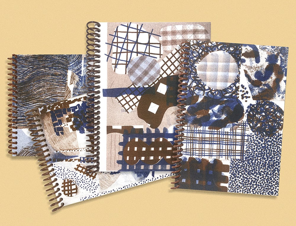 BLUE AND BROWN PRINT SPIRAL NOTEBOOK