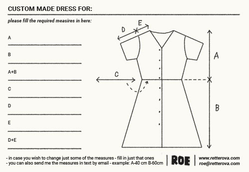 If you wish to change some of the measures of ROE clothes you can order "Custom Size" item.