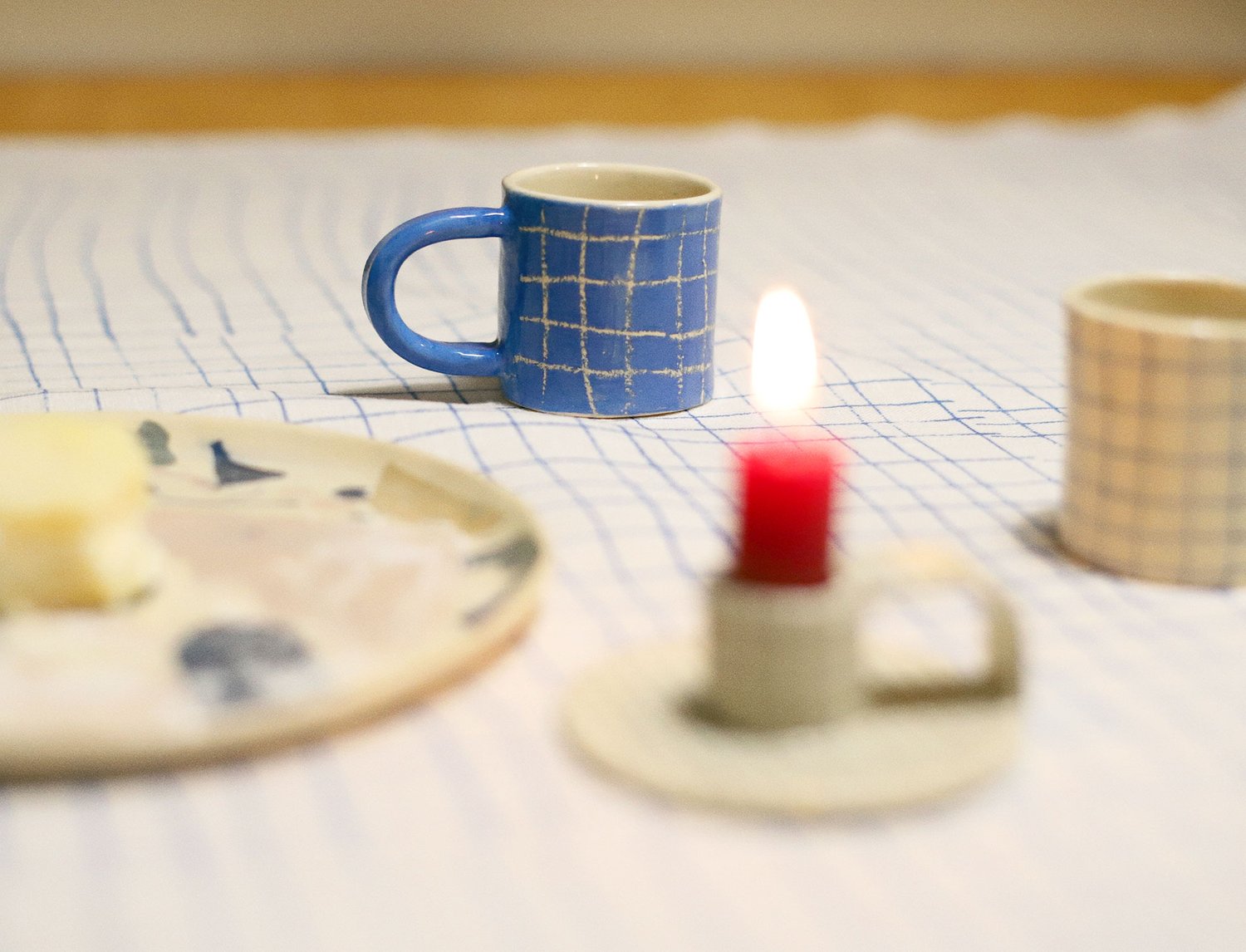 Decorating drawing is made by wax pencil and blue underglaze color.