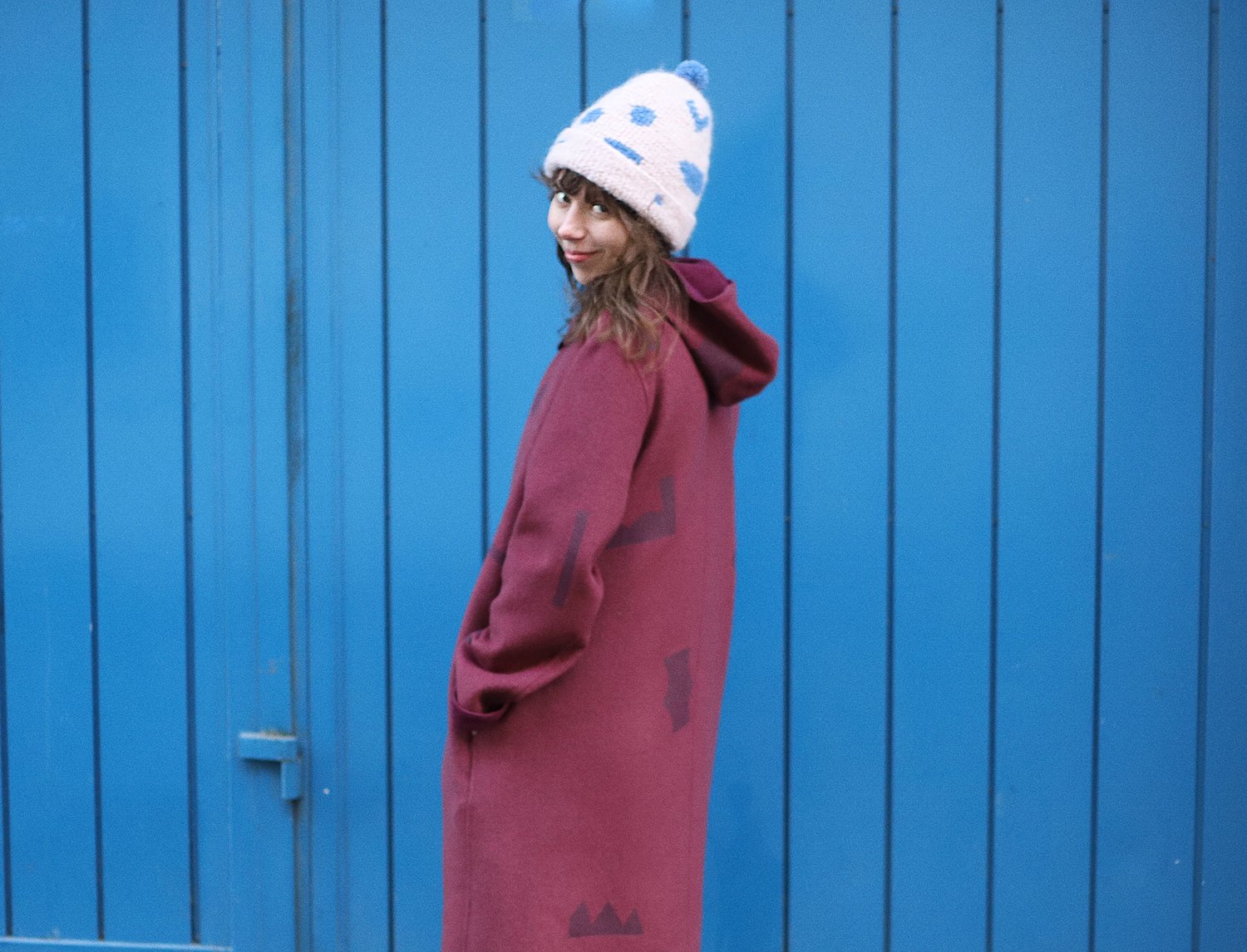 BLUE SHAPES MOHAIR CAP