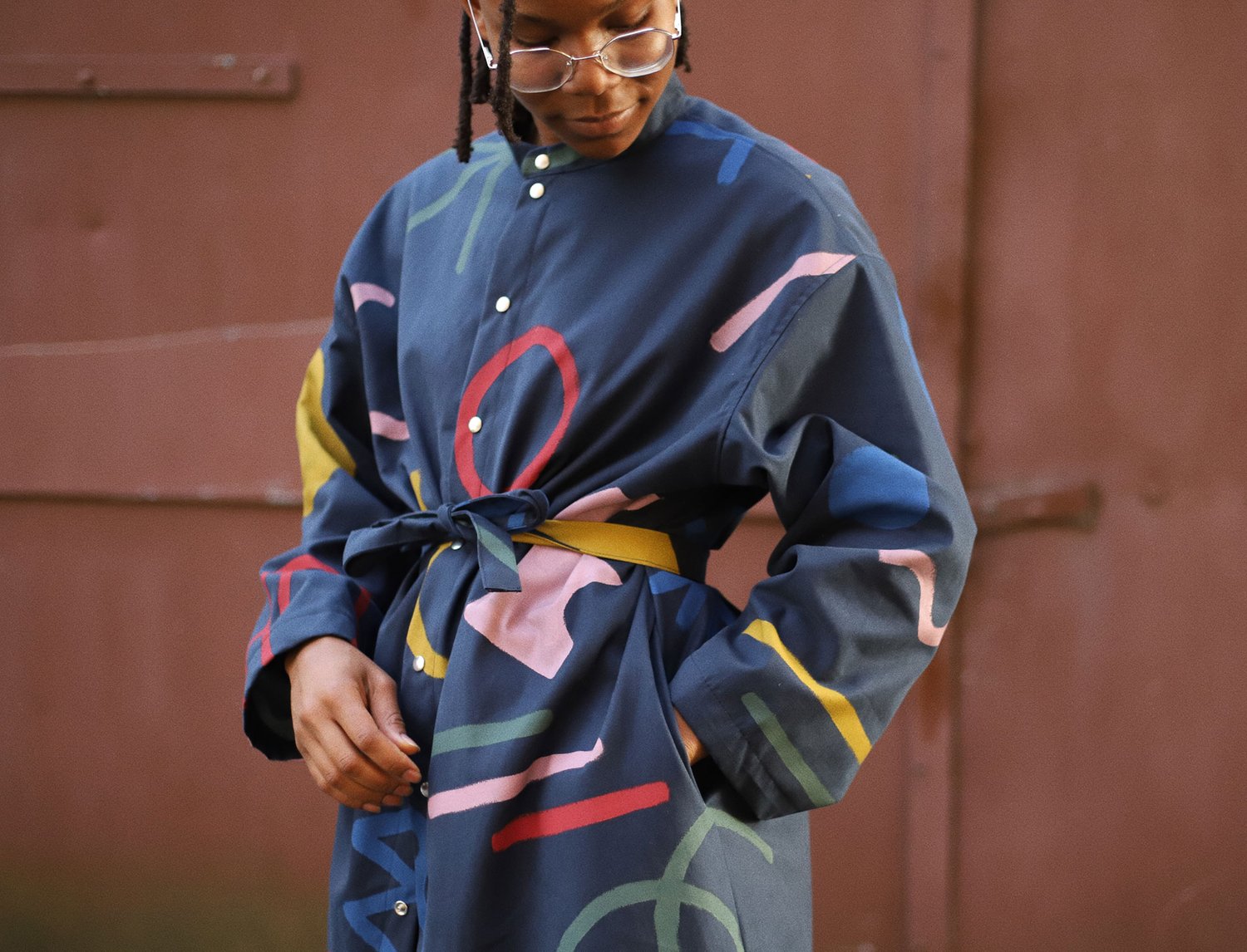 hand painted coat with two pockets and extra belt