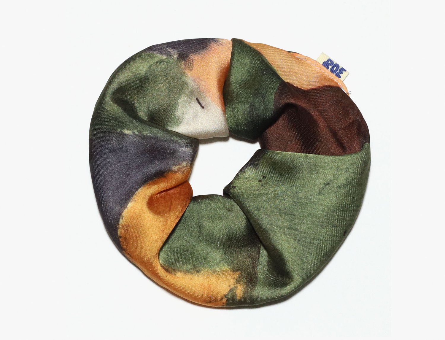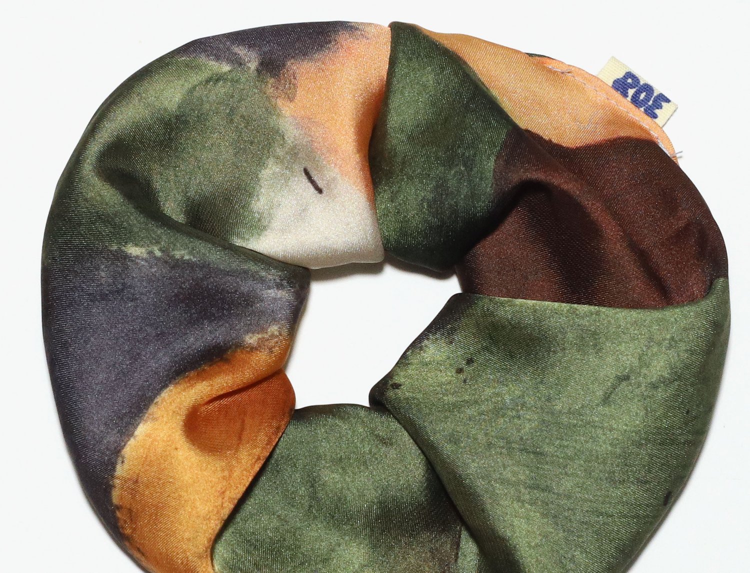scrunchie made out of waste textile cut outs (from scarfd and dress)