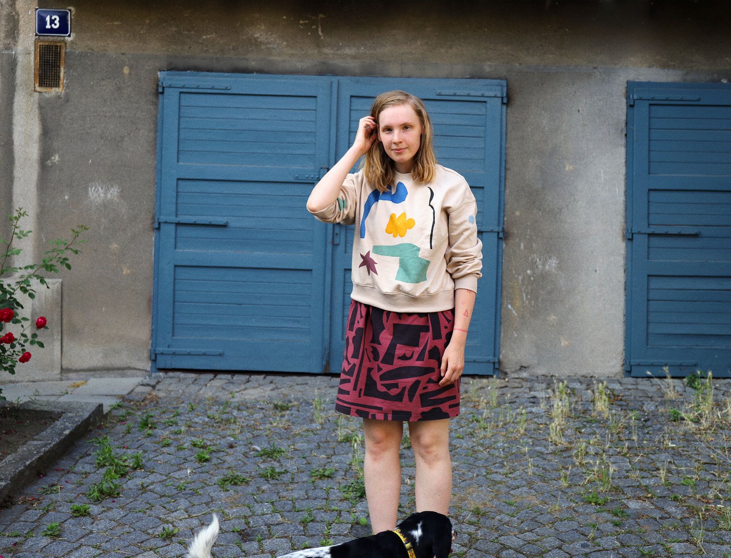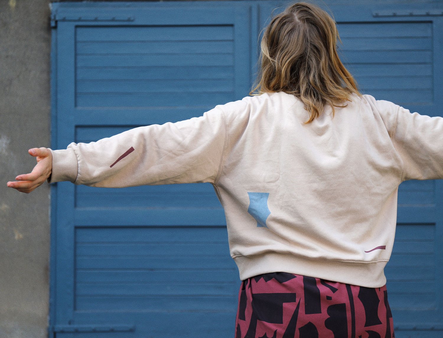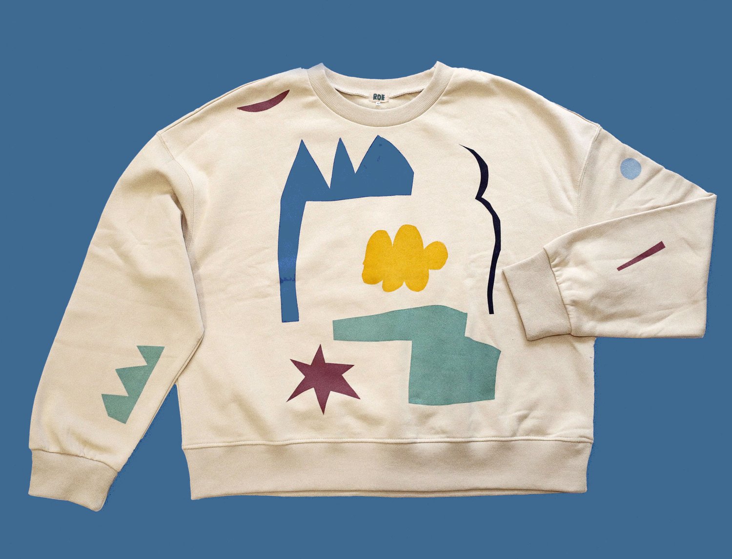 beige sweatshirt with color cut outs print