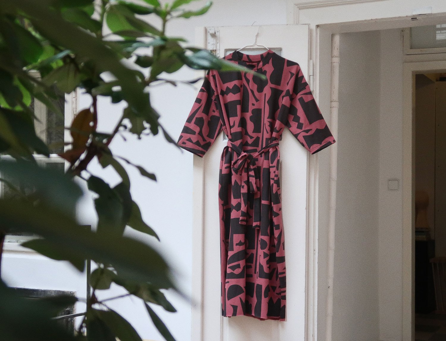hand printed loose dress with belt