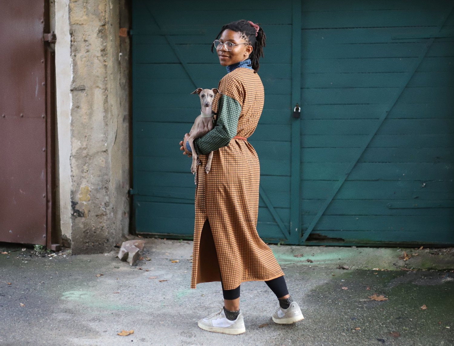 GRID LONG SLEEVE LOOSE DRESS