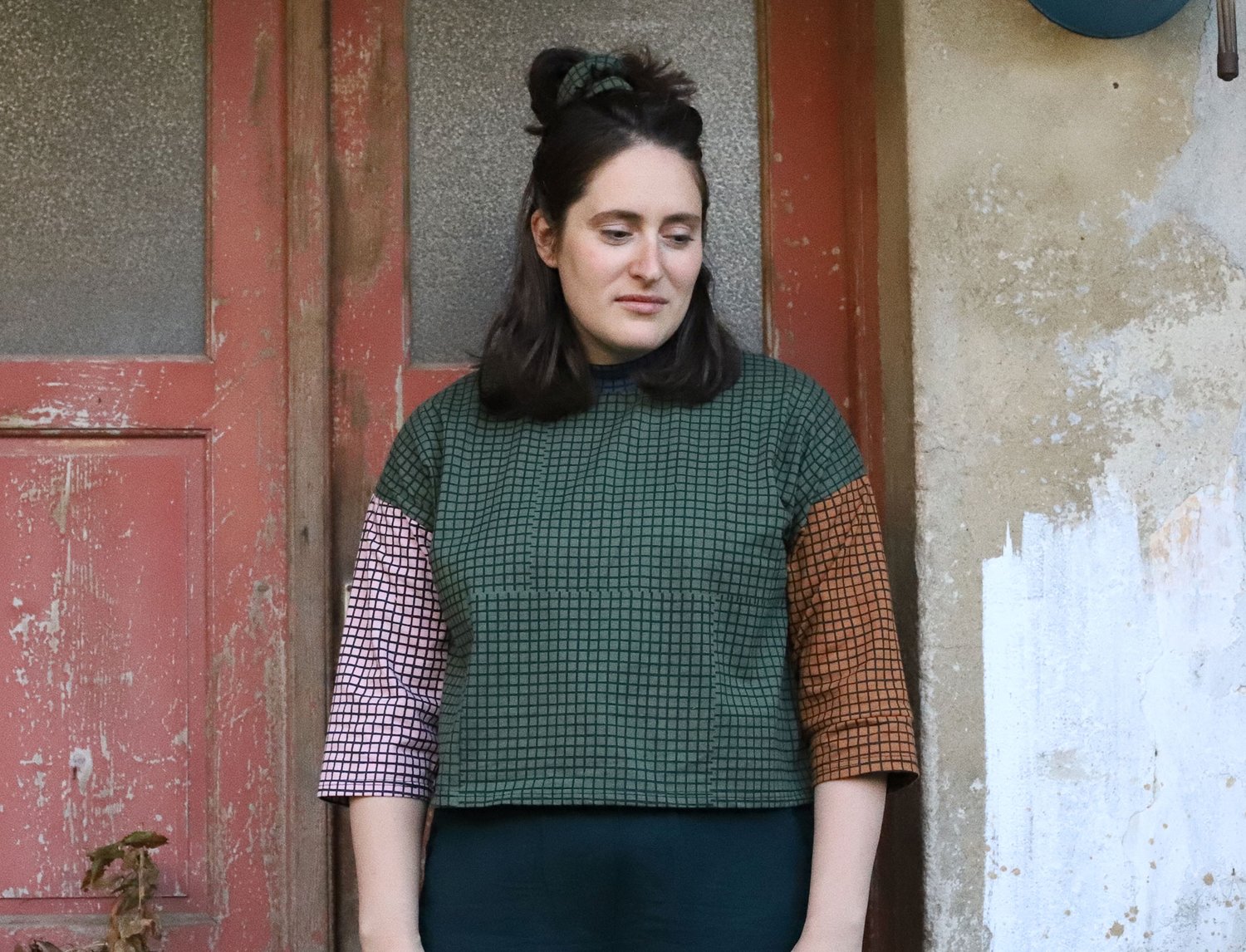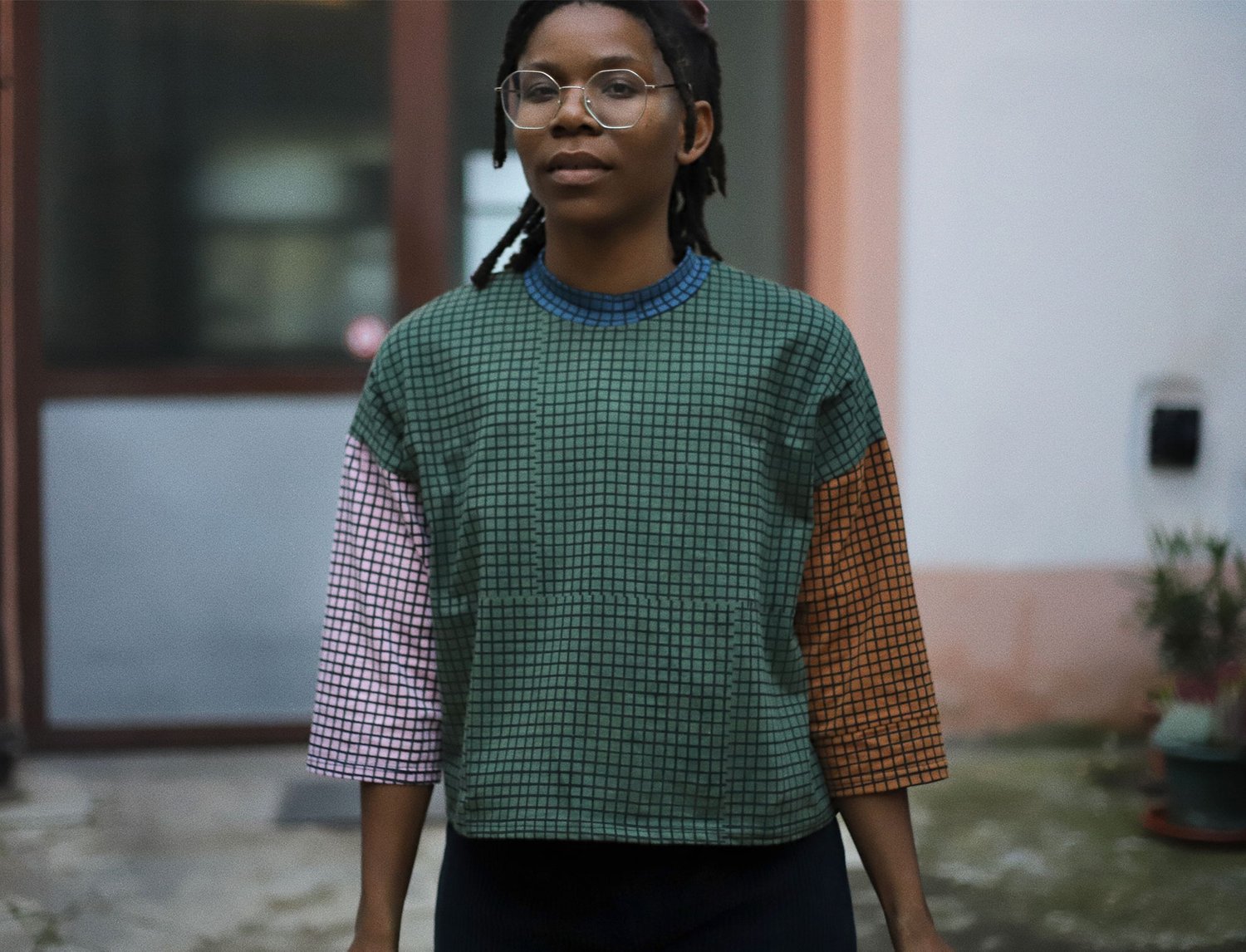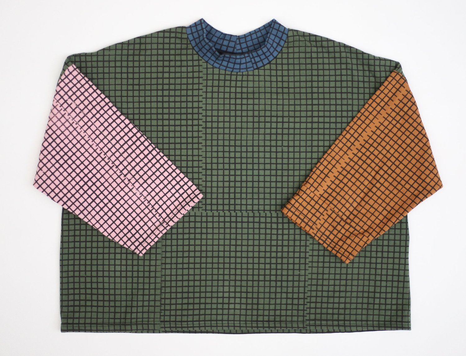 color mix loose tshirt with grid print