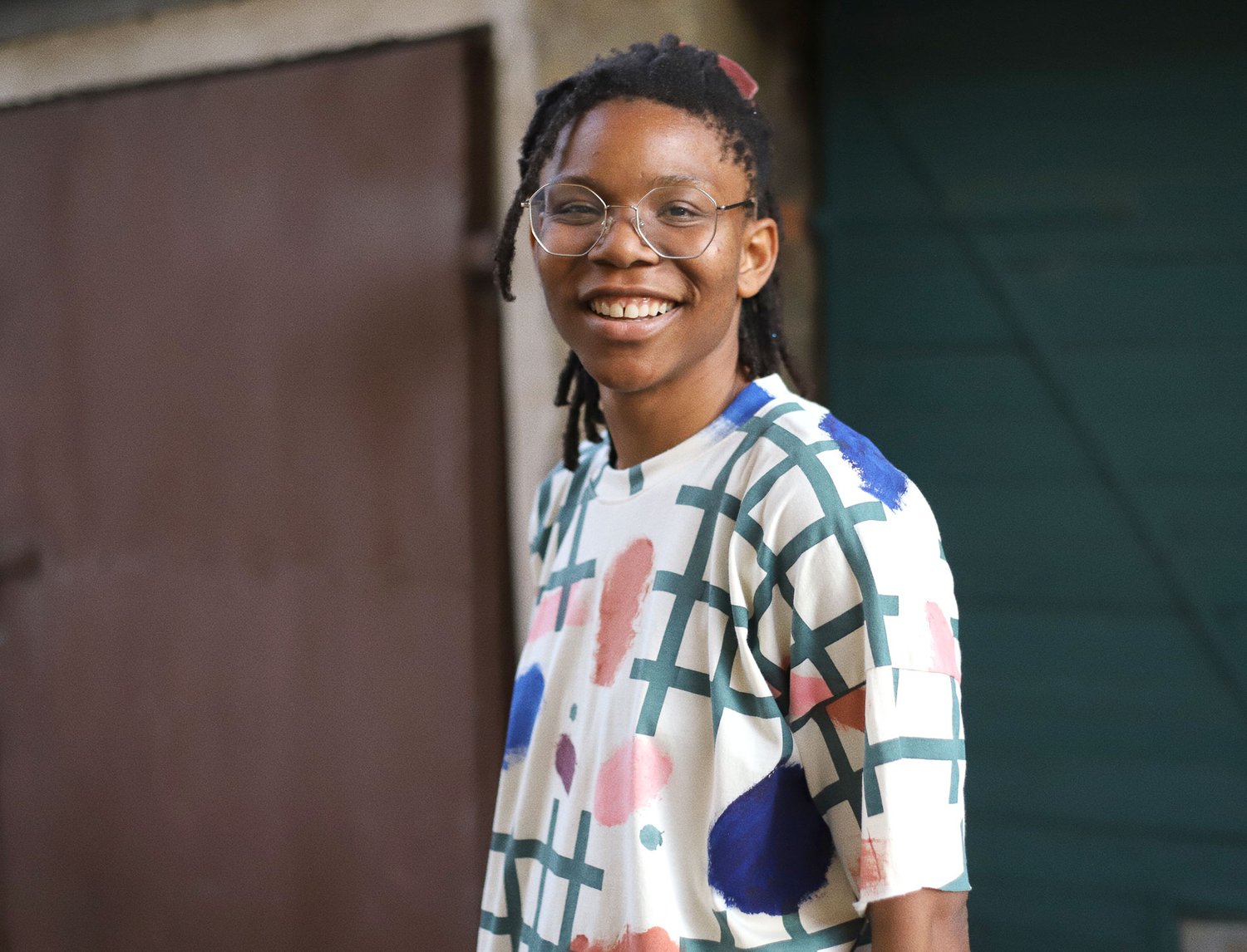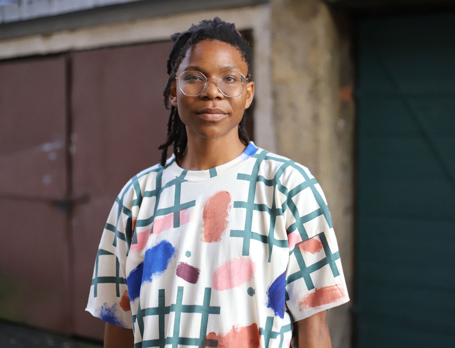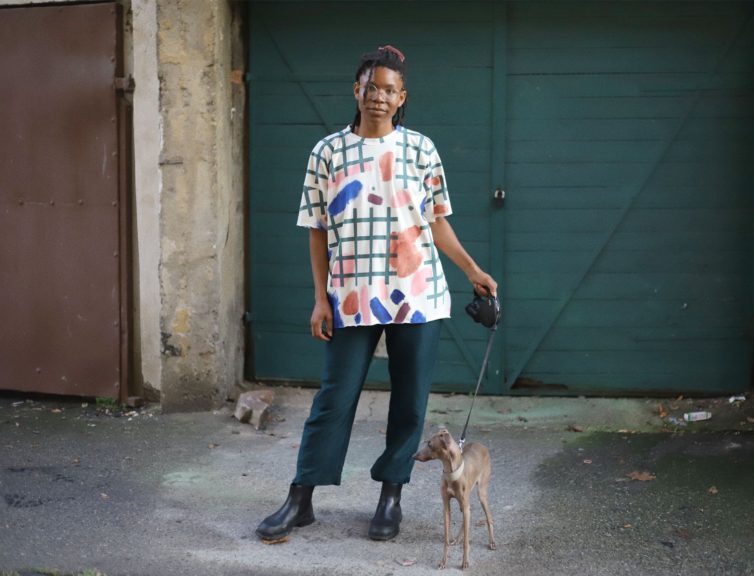 unisex natural color tshirt with grid and strokes print