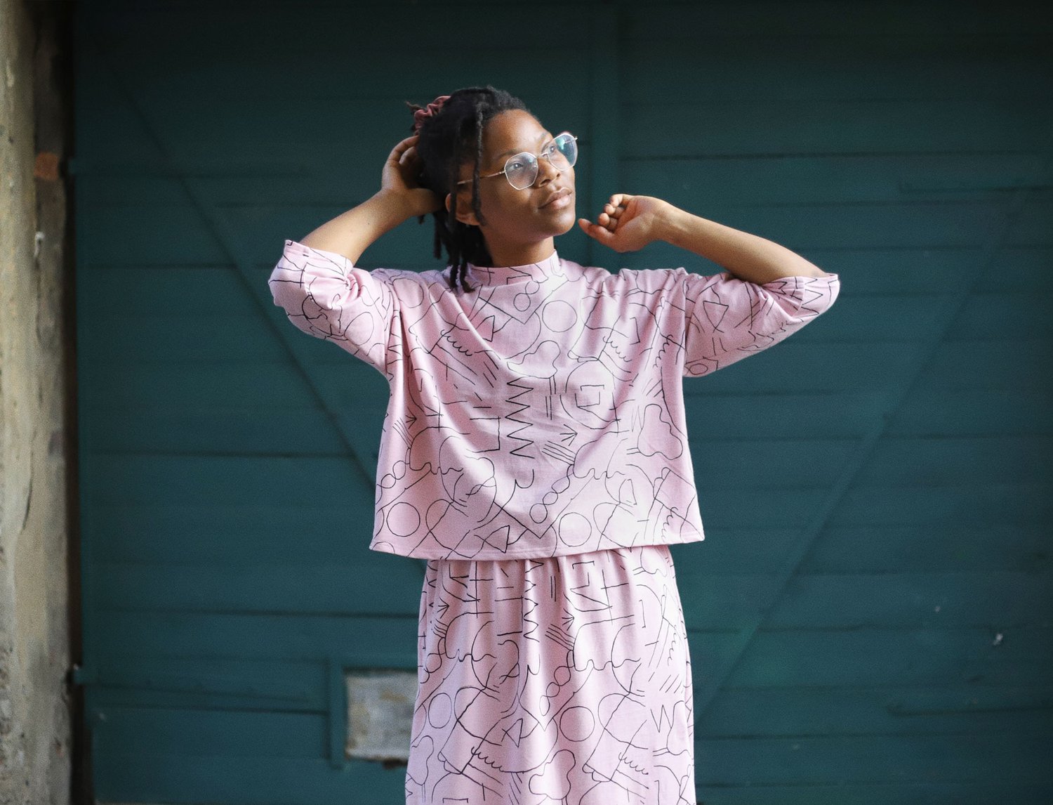 pink loose tshirt with line drawing print